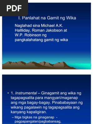 Makapaglalahad ng mga halimbawa ng gamit ng wika sa lipunan. Scribd is the worlds largest social reading and publishing site. AInstrumental bilang WIKA ng PANGHIKAYAT BIGKAS-PAGGANAP B.