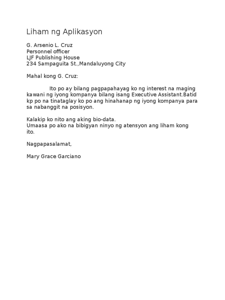 From professional translators enterprises web pages and freely. Ito po ay bilang pagpapahayag ko ng. Salanguit Liham Aplikasyon Nishimura Riki A.