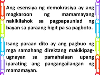 Ito ang bumubuo sa populasyon ng bansa. May mga tungkulin na dapat gampanan ang mga mamamayan para sa ikabubuti nila at ng isang bansa.
