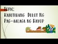 Bukod sa pagkakakitaan ang pag-aalaga ng hayop ay maaaring maging libangan. Ang Republic Act No. Pag- aalaga ng hayop sa tahanan.